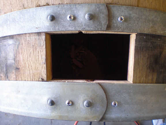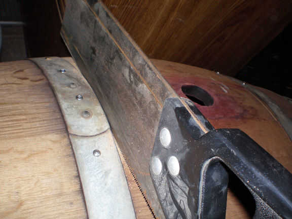 Usé la parte superior e inferior de dos de los anillos de metal para crear una línea recta limpia. Determinar el tamaño de su puerta. Recuerde que el barril se compone de franjas verticales de madera que puede variar ligeramente en anchura. Antes de cortar, localice los extremos de las duelas al principio y al final de su apertura.