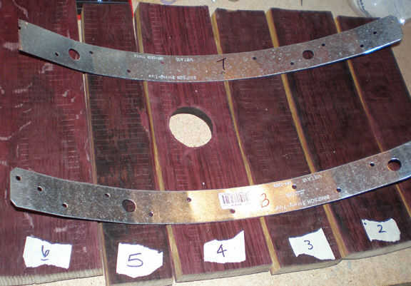 La madera quiere curva ligeramente curva metal tiras y conectar entre sí, comprobando la apertura como vas a conseguir la correcta curvatura de la puerta al cañón. Como se puede ver por mina, tomó algunas cuñas para conseguir a un partido más.