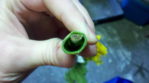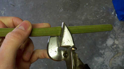 Si tus flores son demasiado largos (los girasoles eran unos 4" demasiado) les dan un ajuste rápido. Si utiliza las flores IKEA, hay un núcleo de metal alrededor tan grueso como una percha con algún cartón alrededor de él - que deba cortarse con un cortador de alambre.
