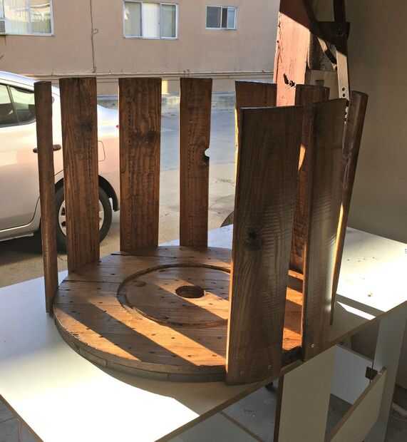 Presentada la base redonda y los listones para determinar la disposición y las lagunas etc. y solo utiliza un lápiz para marcar los puntos. Para facilitar las cosas, hemos perforado los agujeros para los clavos. Nos garantizamos cada tablilla por primera aplicación de algún pegamento para madera y un total de tres clavos. Tres podrían ser un poco exagerada, pero que parecía buena en el momento. Una vez todos los listones Unido, simplemente dio la vuelta la pieza y coloca la parte superior redondeada/interior (boca abajo por supuesto) y adjunta los listones todo otra vez en el lado opuesto.
