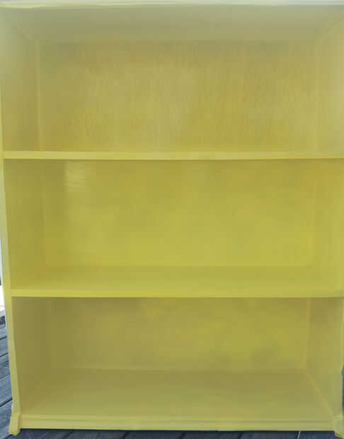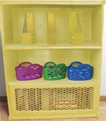 Tenía una hoja del radiador rejilla izquierda de otro proyecto, y me lo pintó el mismo amarillo luego poner delante el vidrio en los dos estantes de fondo. La puerta del estante superior se rompió hace años, pero me gusta abierto.