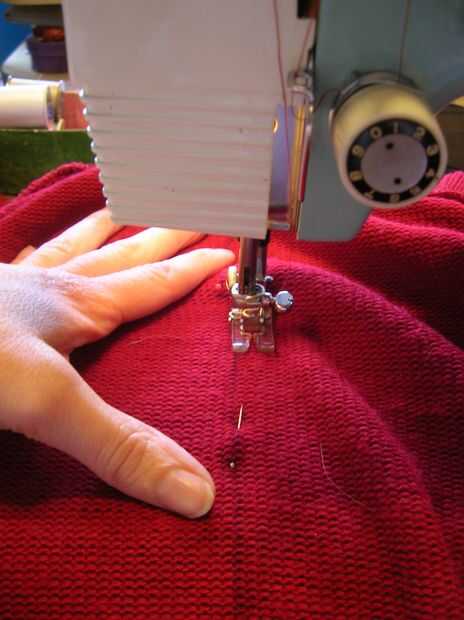 Utilizar a algún tipo de puntada de zig-zag grande; es un suéter y desea que algún tramo. A continuación, corte el panel.