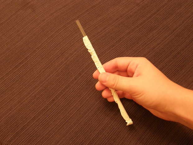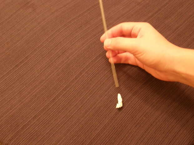 Saque la paja de scrunching el envoltorio por la paja hasta el final. El más usted puede crujir la paja mejor.