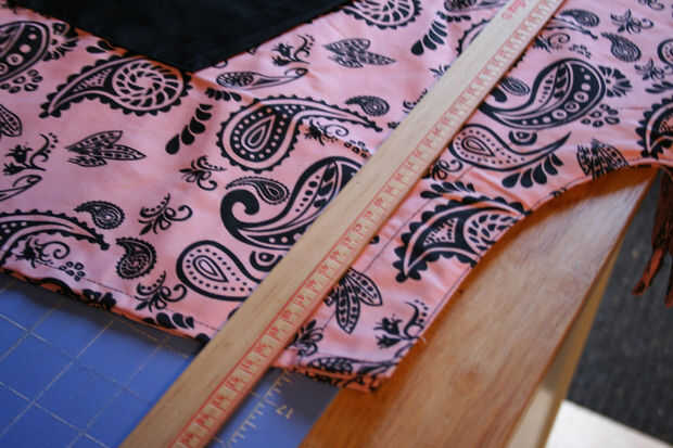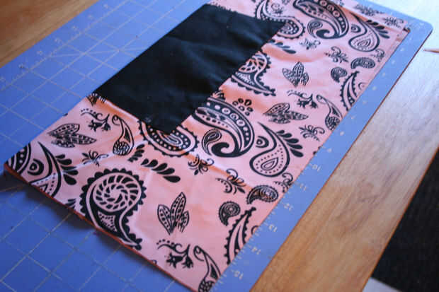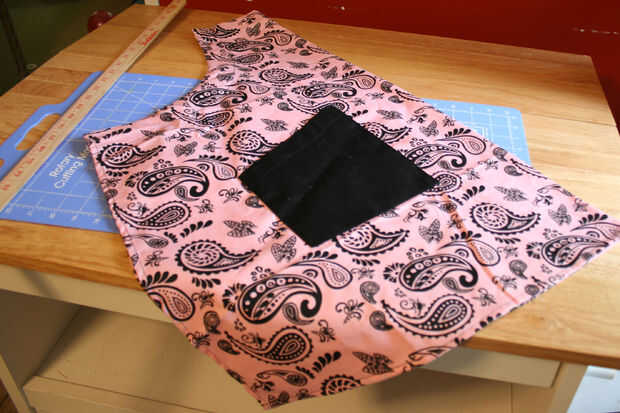 Si usted tiene bolsillos, ésos como una guía de uso para cortar cada cuadrado. Dobla mis bolsillos en la mitad entonces corte a su alrededor. Mis paneles terminaron siendo 16" de altura y cerca de 13" de ancho. También usé a un retazo para hacer un forro del mismo tamaño.