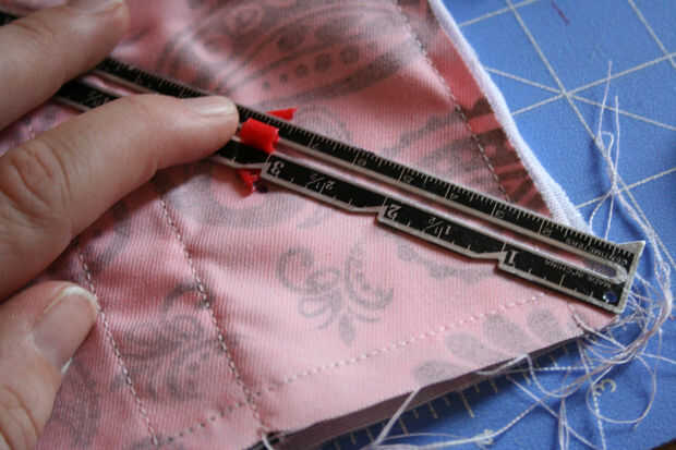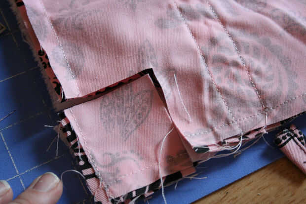 Luego la línea hasta las costuras de la parte y la parte inferior de cada agujero y coser a través de las 4 esquinas de la caja.