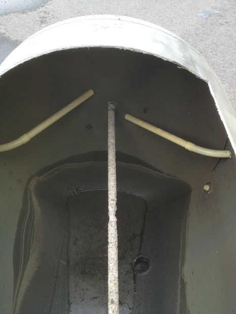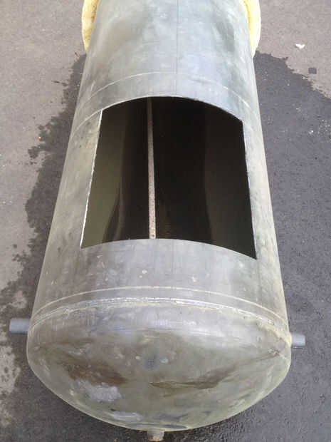Lo primero aquí es señalar que el fondo del tanque es la parte superior del calentador. Esto no fue una decisión deliberada sino que elaboró muy bien cuando llegué a la etapa de combustión. Una vez limpia notó varias herramientas horizontal marcas en el cuerpo y decidió utilizar como referencia. Usando el nivel de espíritu marcado por una línea vertical de referencia. Utilizando dos de las líneas (aprox. 41cm de separación) marcada por una puerta amplia de 40cm. Usando dos de las marcas de herramientas que nominado una sección para eliminar, acortar la altura de la unidad. Primero la puerta y luego la sección media fue cortar utilizando una amoladora con discos (plurales) de corte y acabado de la puerta cortar con una sierra de calar. Los tubos de plástico interiores y ánodo se cortan hacia fuera.