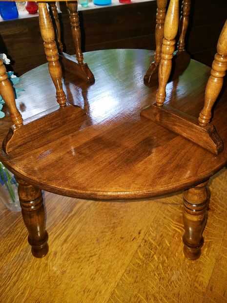 Tan pronto como se haya secado el poliuretano, tienes una bonita mesa final acabada. Que en este caso era sólo $7,50