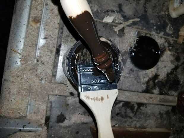 a continuación es el momento de manchar las piezas, a menos que prefiera ser luz... Asegúrese de que cuando se mancha las piezas que tienes una toalla vieja lista para limpiar la mancha más de las piezas y las manos...