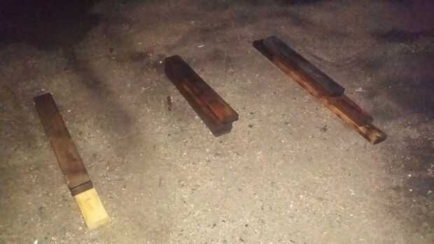 Por eso antes de empezar nuestro burn queremos hacer una pequeña quemadura plataforma para mantener elevado el oso. Esto asegurará que el área de la espalda del oso no es sentarse en brasas rojas y sobre el metal del calor. Queremos garantizar que todas las barras de metal quede completamente rectas. Hemos utilizado unos 2x4s apilado encima para crear esta plataforma elevada. Había estado fuera toda la semana durante algunas de la peor lluvia que habíamos visto en años. Fueron totalmente anegadas y por lo tanto no quemar.