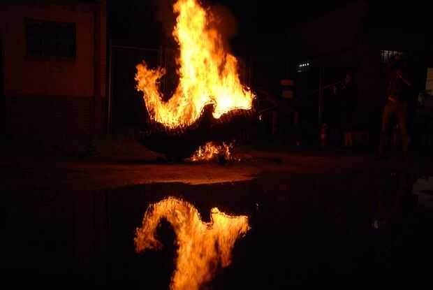 Una vez hemos empaparon el oso en el combustible es encendido tiempo. Agarra un soplete y comienza el combustible de iluminación. El fuego tarda un poco para ponerse en marcha y puede que necesite añadir más gasolina al fuego. Debido a las propiedades no explosivos de la el queroseno utiliza, usted solo puede tirar algunos allí usando cualquier tipo de envase. Simplemente Aléjese un poco. El fuego se ponga en marcha aunque y se consigue caliente!