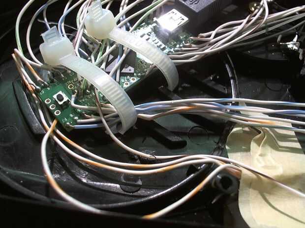 Para asegurar mi Teensy, yo simplemente taladrar pequeños agujeros a través de mi caso en ambos lados de la Junta (dejando un poco espacio para el cableado) y luego se deslizó dos abrazaderas de plástico alrededor de la Teensy. Tenga cuidado de no apretar excesivamente los lazos zip, sólo tienen que ser lo suficientemente apretada como para mantener el Teensy y guardarlo de vuelo dentro de su juguete.