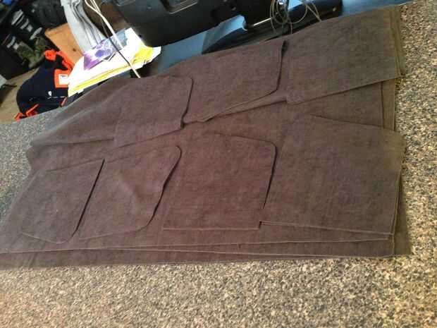 Las cubiertas del resbalón fueron creadas con una mezcla de estas telas. Me corte un patrón del asiento sí mismo y a través de ensayo y error les restitched hasta arrugas desaparecieron y eran un ajuste perfecto. Los extremos de las cubiertas del resbalón, coloque en la parte inferior del respaldo del asiento. Una vez tuve mi patrón, corte los 8 y había les había ensamblado.