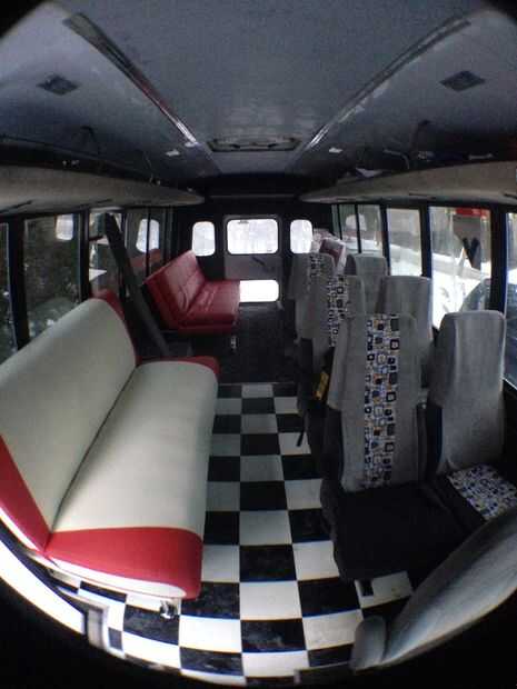 Instalar los asientos. Éstos van hacia atrás en los mismos lugares que fueron quitados, usando las bases existentes y agujeros. Intentamos poner uno hacia atrás, sin embargo al final funciono mejor tener 3 sistemas por un lado y la 4ª en el pasillo del otro lado.