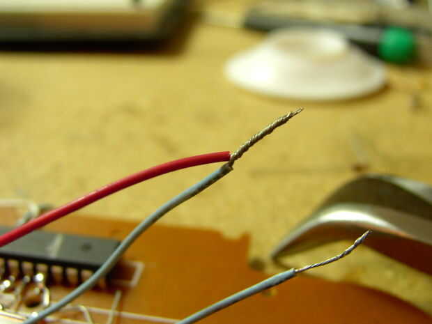 Luego soldar el cable de tierra desde el cable usb a uno de los conductores conectados a tierra