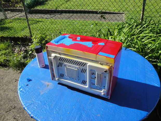 Después de decorar, quitamos la bandera de nuestro buzón de mierda viejo y gorila lo pegué en el microondas.