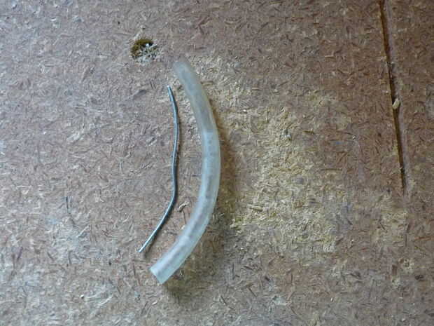 Lo primero que quieres hacer es cortar el tubo y el alambre a la longitud correcta. La tubería plástica parece funcionar mejor en unos 4-5 pulgadas. A continuación, usted quiere cortar el cable, que debe cortarse un pelín más corto que el tubo. Finalmente, inserte el cable en la tubería y doblar la tubería ligeramente para mantener el alambre en su lugar. Ahora su lista para configurarlo!