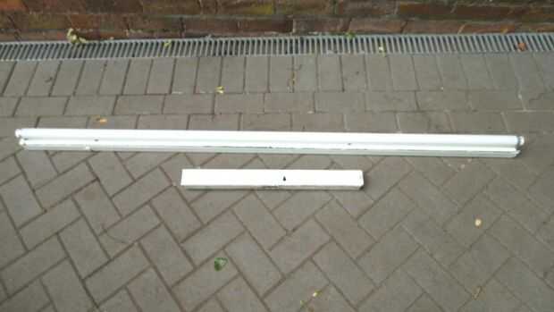 Tubos para 8' 100 vatios y vatios 125 accesorios ya no se fabrican, y las existencias restantes se están volviendo escasos y caros. Esto significa que muchos completamente funcional 8' accesorios están siendo eliminados de la falta de un tubo nuevo. Me di cuenta de que las diferencias sólo fundamentales entre éstas y las variantes más cortas son la longitud y, por supuesto, la calificación de la estrangulación del lastre. Por lo tanto, tomé una chatarra 8' guarnición fluorescente, quita el conector del tubo de un extremo, corte dos pies desde un extremo del chasis metálico y tapa, luego vuelva a conectar el conector del tubo. Después de montar un tubo de 6', que conectado a la red de 230 v CA. ¿Adivina qué? -Comenzó al instante, y la salida de luz era brillante y estable.