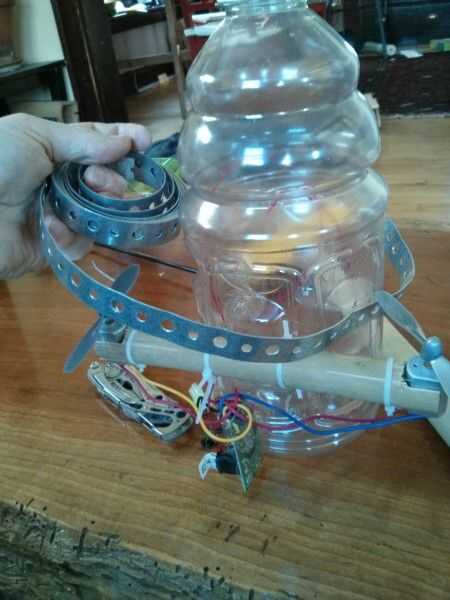 Para mantener su sensible electrónica seca, usted necesitará agregar una quilla de algún tipo. Debe ser lo suficientemente pesado que la botella no talón sobre lo suficiente para mojar los motores, o volcar. He utilizado un tornillo de 4 pulgadas con como muchos 5/8" tuercas como pude ajustar en él, pero esto hace que para una quilla poco manejable y bastante mal formado y los lazos zip utilizan para garantizar no ayuda. Pesos de plomo de pesca, o cualquier objeto pesado, denso que es suave y se puede montar con seguridad, sería una mejor opción.