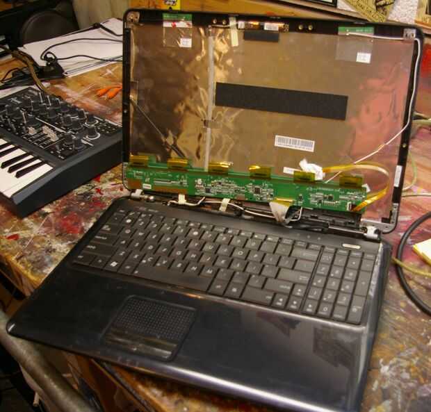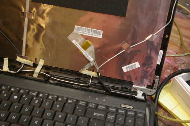 Porque la pantalla estaba ya fuera de la laptop, era sólo cuestión de localizar donde necesitaba poner el agujero así puedo presiono el botón de encendido con la tapa cerrada. Antes realmente de cualquier medida o corte, me aseguré de que todas conexiones eléctricas, etc. no estaban en el camino.