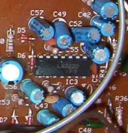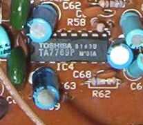 Hay otro IC, un LA7769 (fotos cuarto/quinto) cuya salida va directamente a los altavoces. Este IC es al parecer el principal, más amplificador para los altavoces.