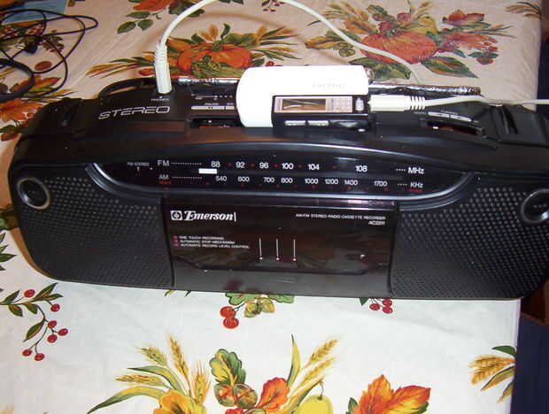 Ahora puedo conectar el reproductor de MP3, o cualquier otro dispositivo con los audífonos de la salida, en el Boombox MP3 y reproducirla para que todos puedan oír. Yay!!