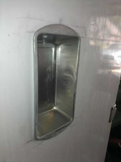 Corte para que el pan se deslice en el interior de apertura y el labio de la fábrica del sit de pan encima de la cara de la puerta y tapar el agujero que fue cortado. Ver fotos de esclarecimiento.