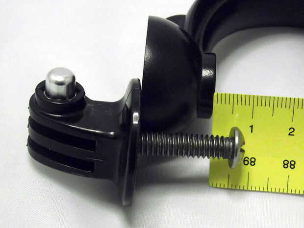 La foto muestra cómo calcular cuánto para cortar; el tornillo es instalado en el adaptador del trípode entonces llevó a cabo cerca el montaje perforado-hacia fuera.
