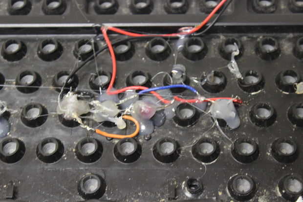 Cuando terminó mi circuito de soldadura, simplemente caliente pegué los LEDs en su lugar. Esto no es lo más bonito, pero funciona. Te sugiero usar perfboard si tuviera que hacerlo otra vez.