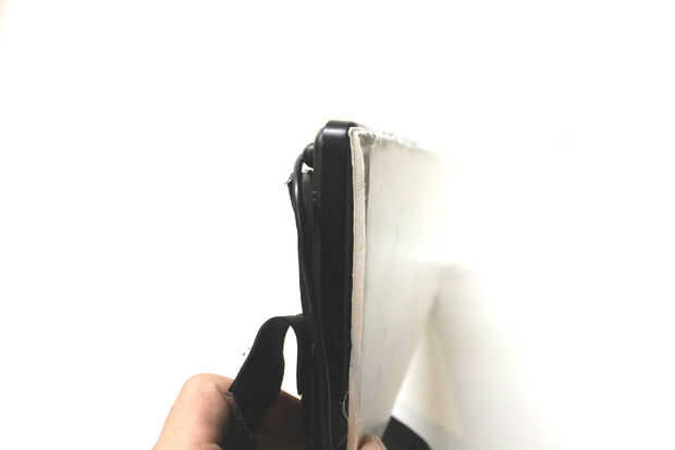 Ahora vamos a necesitar una cubierta para la parte posterior de nuestra llave-tar. Corta un trozo de cartón pluma con el tamaño del teclado y pegamento caliente sobre el teclado.