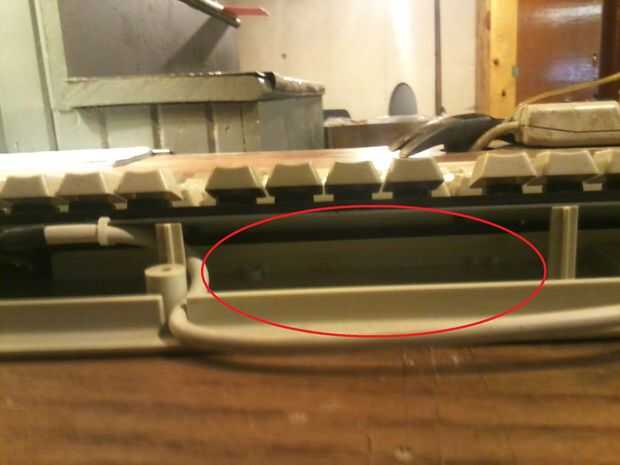 El teclado utiliza tiene un amplio espacio para albergar un RPi, como se ve aquí con la tapa quitada.