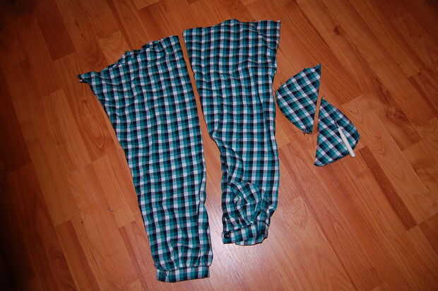 Cortar lo que no quieras en tu vestido final. Lo primero que me quité fue las hombreras. A continuación, el elástico en la cintura. También quita las mangas y cortar la falda por la mitad.