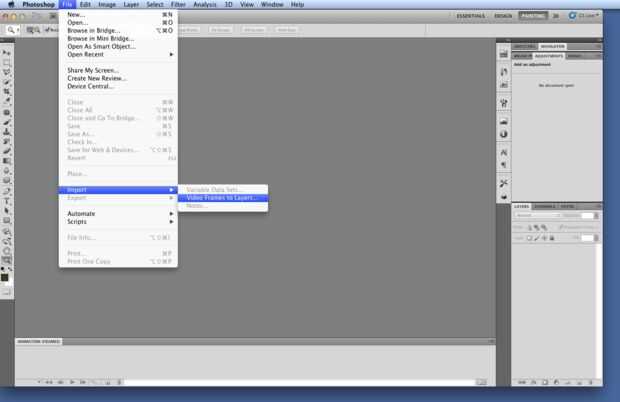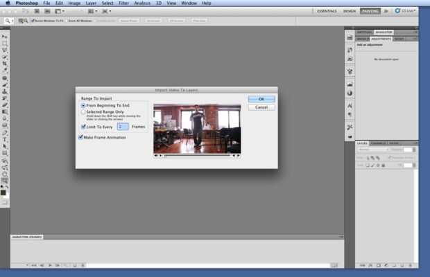 Recuerde, que había comenzado con dos segundos de video, que a 29,97 fotogramas por segundo debe generar unos 60 frames. En un esfuerzo para mantener pequeño el tamaño de mi archivo, límite Photoshop para importar sólo cada dos fotogramas.