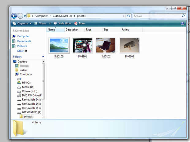 Felicidades, su volumen se hace. Ahora hacer el resto de la tarjeta no buscar sospechosos en caso de que alguien lo encuentra. Cambiado mi archivo de volumen a IMG100, para hacer parecer como si una cámara genera estos archivos. También he añadido archivos cerca en tamaño y también mi clave de acceso como uno de los archivos. Listo, disfrutar de la seguridad.