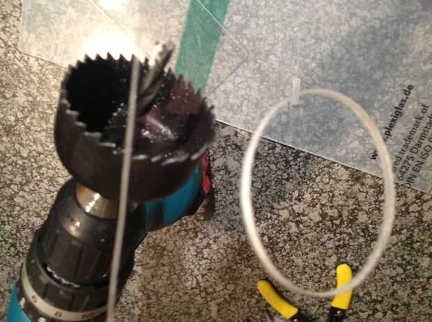Utilicé una sierra de 54mm para cortar el ventilador de cpu y 10mm para el intack de fondo.