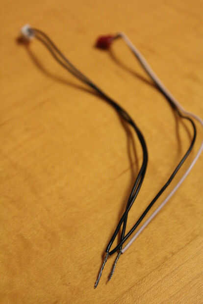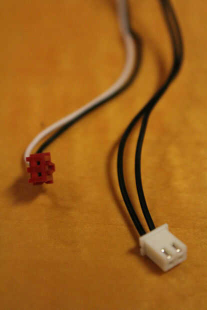 Así, para resolver ese problema, Jesse tenía la impresionante idea de utilizar conectores de 2 pines como "sockets" para los LEDs. Así, puedes tirar el LED cuando quema y enchufe en otro, no muss sin problemas. Estos conectores de 2 pines eran cosas que tenía por ahí. Usted puede encontrarlos en paquetes de baterías, unidades de disquete viejo y dentro de muchas otras cosas. Así que ir a buscar una pareja.