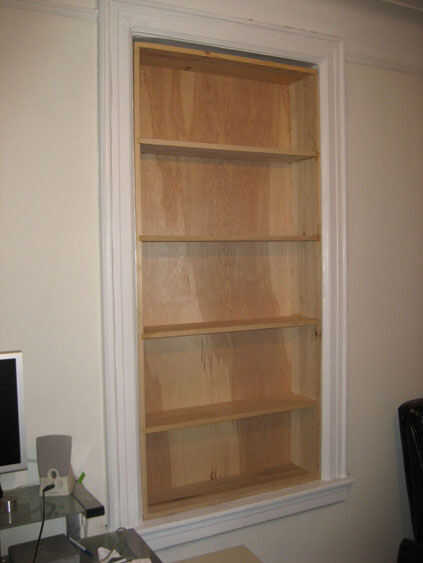 Opcional: también puede utilizar esta misma idea para hacer una estantería de una ventana que se ha abordado hasta. En este caso un edificio fue construido justo al lado de la ventana que abarca la vista. La ventana es un poco más profunda que la tabla de planchar. No es también necesario para el frente "barras de la estancia".