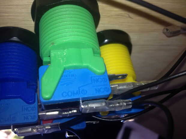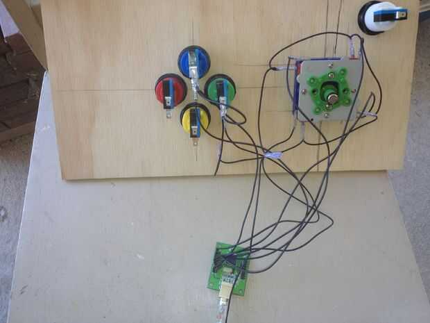 Así que este paso variará dependiendo de la interfaz que se obtiene. Mina era bastante sencillo, pero tendrá que seguir las instrucciones que tuyo viene con respecto al cableado, sincronización a MAME sin embargo debe ser el mismo para todos. Me pareció facilita hacer un mock para controles de panel para mi botones y el joystick desde un poco de madera contrachapada de 7mm, perforar algunos agujeros de 28mm (con una pala) y los botones colocados en su lugar. Yo entonces cableado les según el esquema que tengo con la interfaz. Enchufe el cable USB y arrancar su pi.