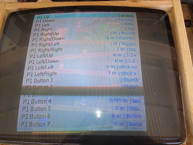 por ejemplo, decir desea establecer así el reproductor 1 "botón up". destacar P1 por, golpe entrar, presione el joystick hacia arriba (debe recibir algún tipo de respuesta del MAME, lo pone en la línea de destaca algo como j:trig o l, pinkie, siempre obtendrá una respuesta todo está bien.), luego presione la tecla hacia abajo.
