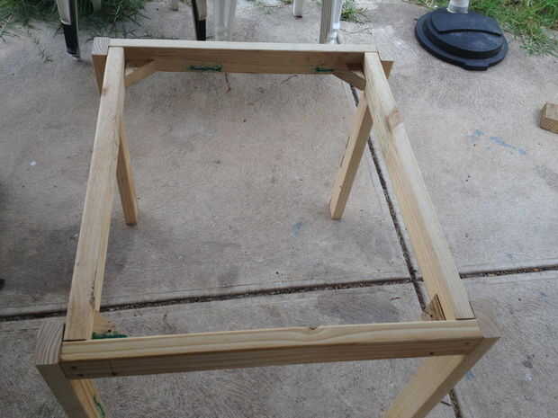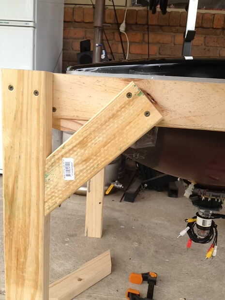 Luego pongo 45 grados refuerzo soportes en las piernas así como robusto para arriba.