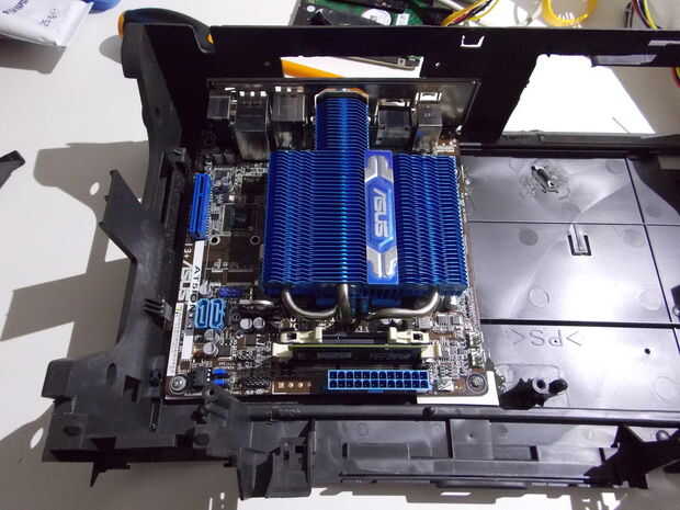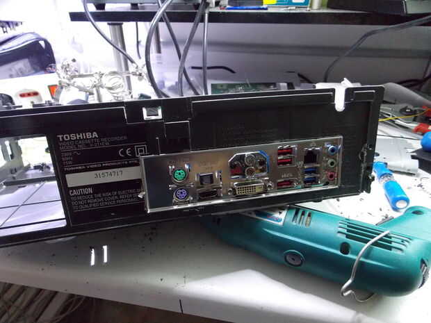La "ventana trasera" de la motherboard se hizo simplemente cortar un área rectangular de plástico con una herramienta giratoria barata.