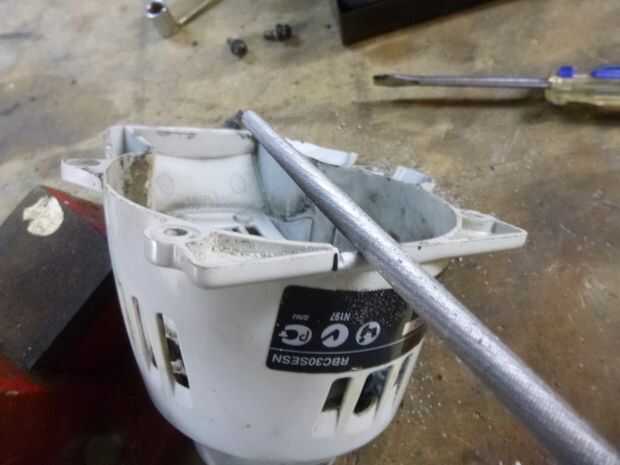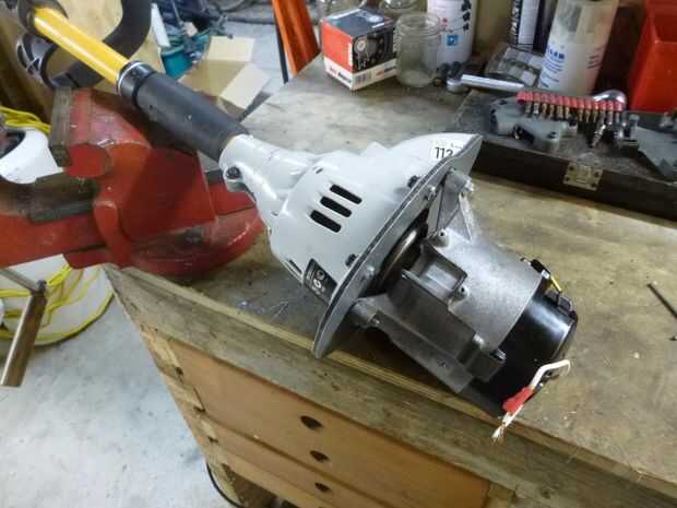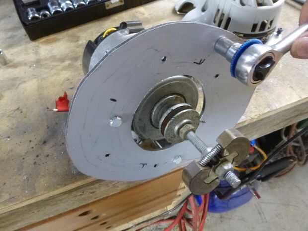 Esto fue resuelto simplemente marcando donde las cabezas de los pernos reunieron la carcasa, luego recorte y presentación para hacer un hueco para cada tornillo. Esto significa que uno tiene que empernar la placa del adaptador al motor en primer lugar, por lo que se puede utilizar una llave o zócalo sobre la cabeza del perno y tornillo de la carcasa a la placa.