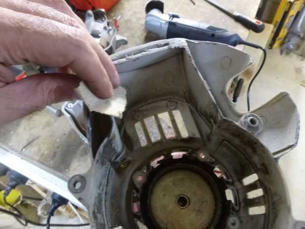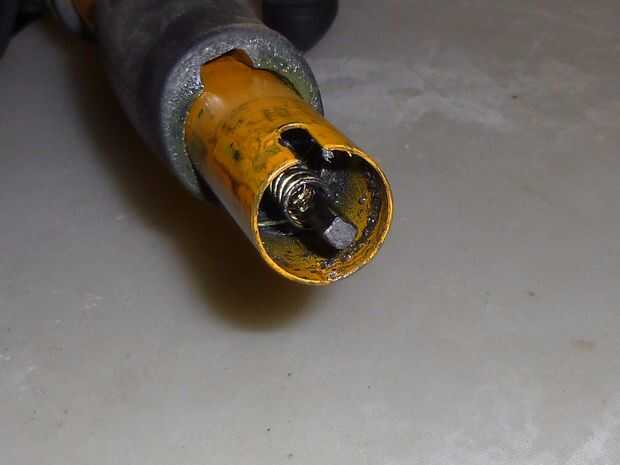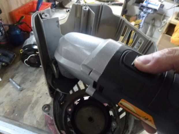 Sacar el motor viejo, el ensamble del gatillo y los cables era simplemente un caso de unos tornillos. La filosofía de "ser útil" dictado manteniendo los tornillos y algunos otros bits.