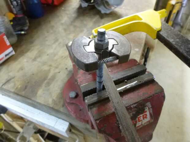El perno de sujeción en el vicio, hack-había aserrado el hilo la marca correcta.