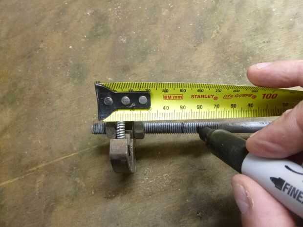 Me mide 60mm del hilo de la primera marca y otra. Se puede ver en las fotos que casi me cagué (ho, ho) midiendo inicialmente 60mm desde el extremo del hilo, en lugar de la parte inferior de la tuerca inferior de embrague. Como era, yo no hubiera tomado la profundidad de la rosca de la polea en cuenta...