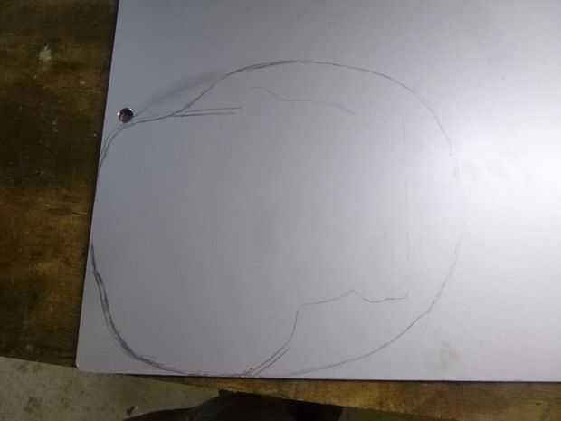 Había trazado alrededor de la carcasa del motor entonces dibujó una frontera más amplia en donde el nuevo motor era ir. Un rompecabezas hecho trabajo de la corte.