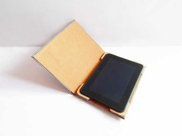 Pensé que era una idea inteligente y decidí darle una oportunidad porque necesitaba una caja para mi Kindle. Encontré una vieja agenda con una cubierta de tela suave que era sólo tan grande como mi Kindle por lo que no podía ser más perfecto que el!