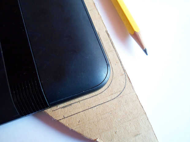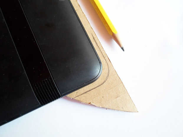 Ahora trazar el contorno de los ángulos de la tableta en la cartulina.
