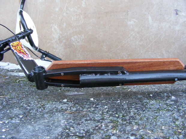 Esto forma un lugar para soldar con autógena el travesaño inferior original a y también convenientemente una pequeña plataforma para arreglar el paso de tiro a. Utilicé un viejo pedazo de caoba pero hubiera preferido usar algo como aliado checker placa. Tal vez agregare una tapa de placa a él cuando me encuentre un pedazo.