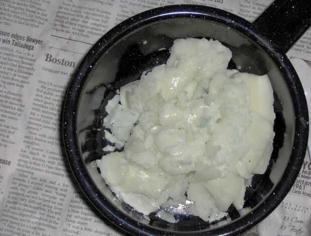Sebo es un blanco sólido a temperatura ambiente. Así es la FAM que hice del jabón de Ivory(r), que supuestamente se hace del sebo.
