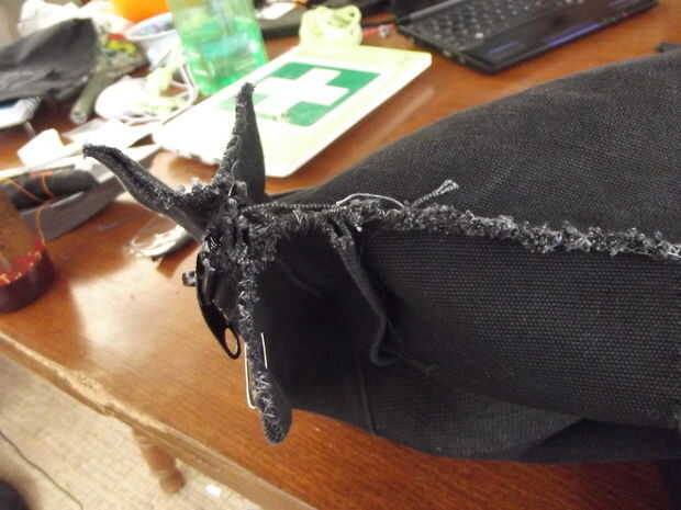 Ahora doble los lados superiores por la mitad y coserlas, como se muestra.